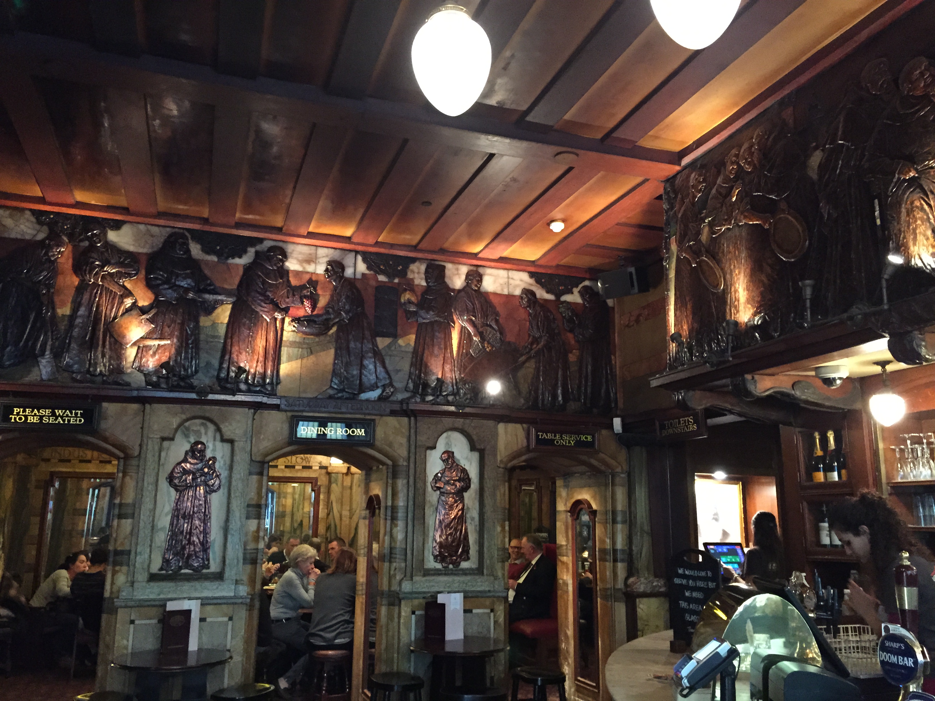 I had gotten particularly lost on my way to The Blackfriar, but I knew I had found it when I spotted a triangular-shaped building ahead of me. The pub was very similar to what I had envisioned from its description on the Internet except its size was a little smaller. And their Steak and Ale pie, which is what Michelle ordered when she was there with Harold, was just as delicious I thought it would be. I even sat two tables away from the corner table in the photo.
