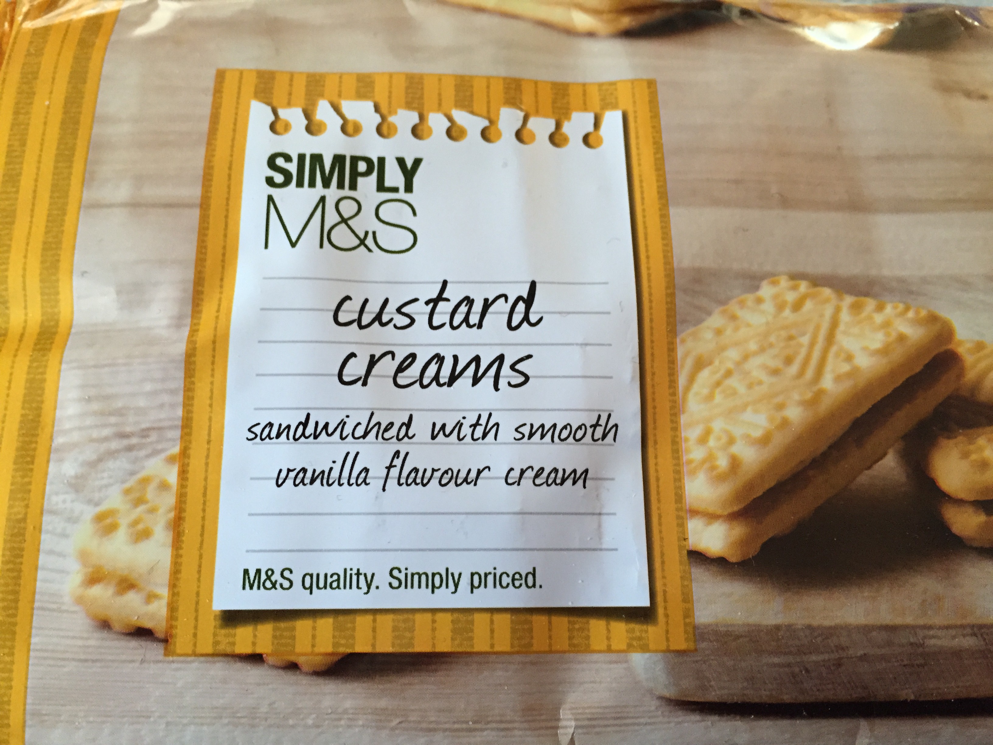 In the original draft I submitted to my publisher, Granny Bea doesn’t present Michelle with just any cookies, she presents her with custard creams from Marks and Spencer. I happened to pick up a package at the well-known department store.